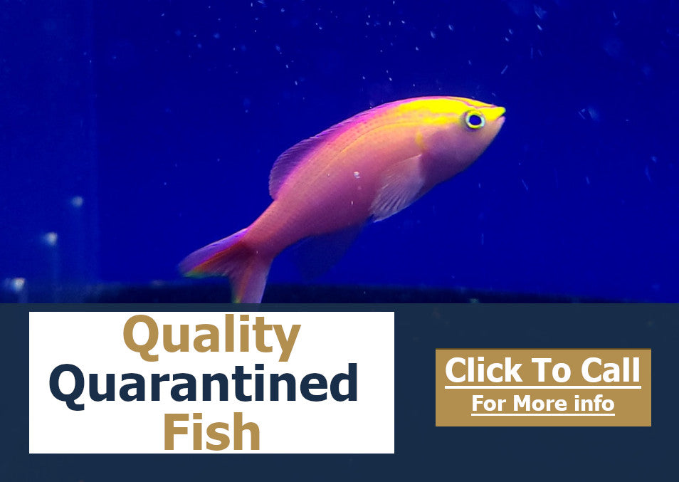Our saltwater fish are available both as "treated", which happens at the time we receive, which we currently have on display out on our shop floor o separately as "30 Day Quarantined". Our treatment tanks aren't on display, and still under construction as we expand it and will make a retail display for finished fish. Our saltwater quarantine process here in our new shop is better than ever. We maintain many dozens of individual quarantine tanks to treat and medicate using the appropriate drugs and our own treatment protocols best for that type of fish (eg, chloroquine phosphate, hydrogen peroxide baths, etc). Tanks, filters, equipment, etc are always bleached between each fish shipment and water is never reused. It takes a ton of effort and wastes a lot of water, but it's worth it! We are working on a complete write up about the entire process, but we are always happy to demonstrate in person.