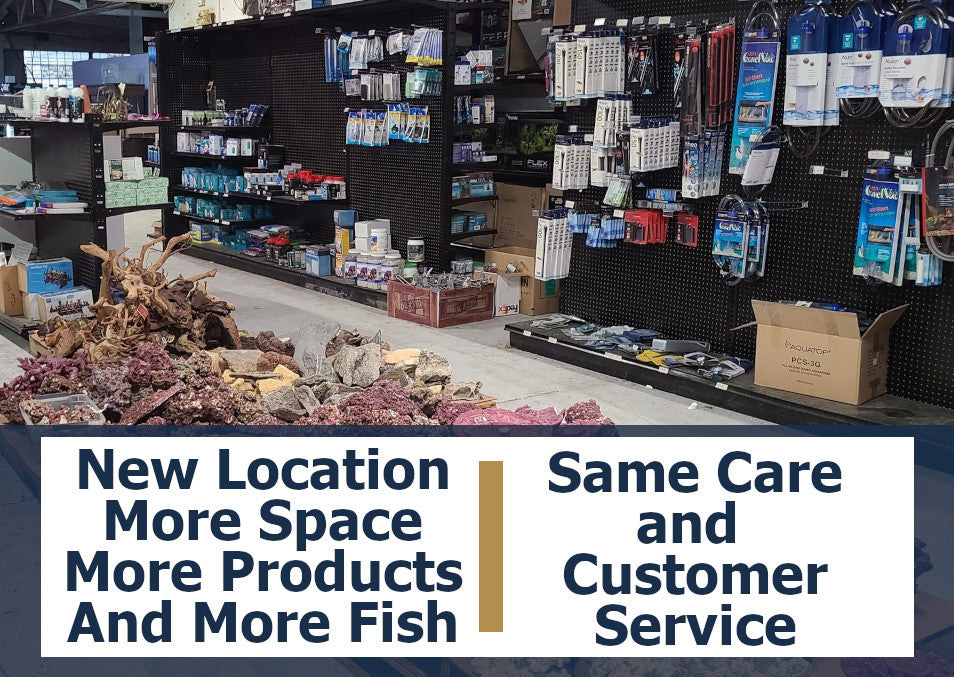 We have moved! Exciting things are happening at Bay Bay Bridge Aquarium, and we want to share some important news with you. With triple the space of our original location we are able to carry a larger selection of products for your convenience. We are now open 12pm-6pm EVERYDAY!